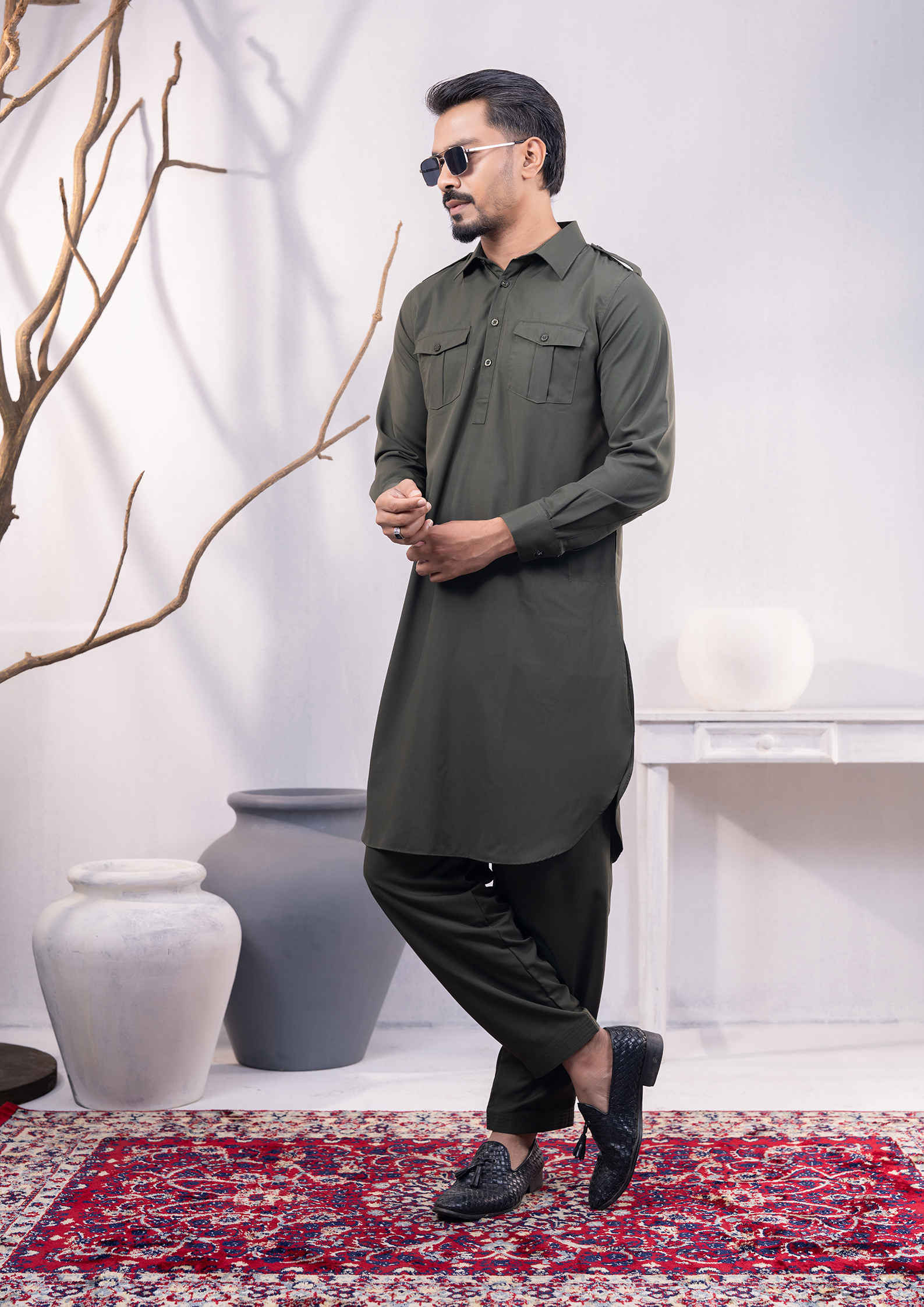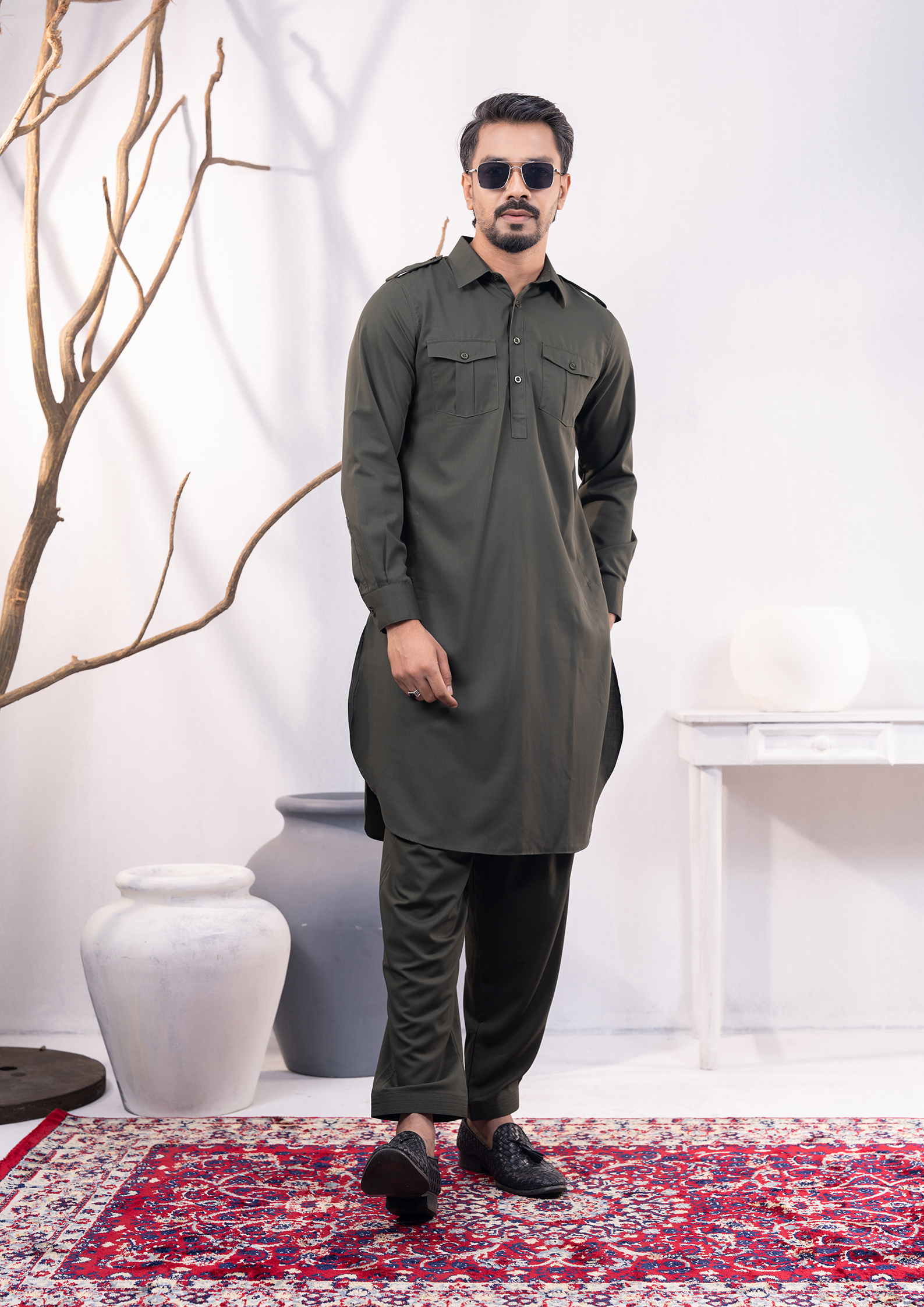 | Design Details | Cargo Pocket And Shoulder Strap Detailed Men’s Kabli Set. |