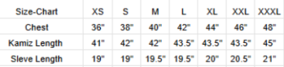 | Size Chart | Chest | Tops Long | Kamiz Long | Full Sleeve | Quarter Sleeve | Pant Long |