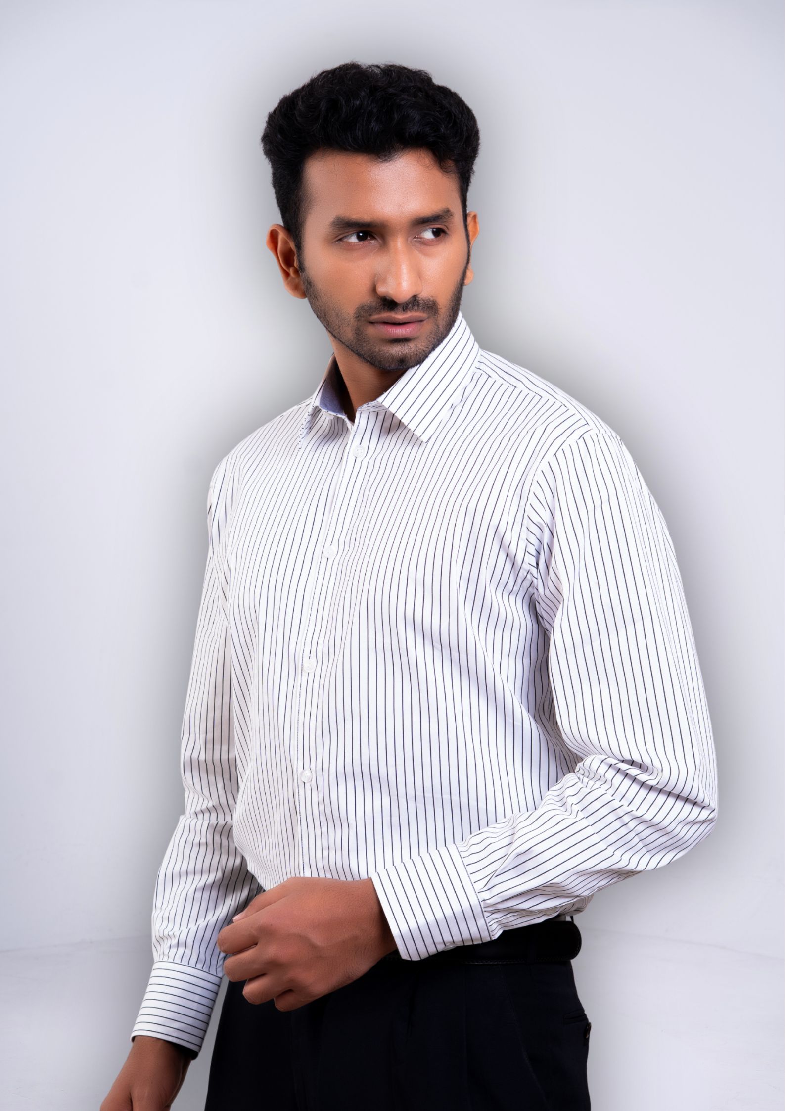 - Classic White-Stripe shirt crafted from 100% premium cottonÂ